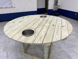Handmade Round Oyster Table with Metal Buckets for Shells
