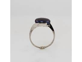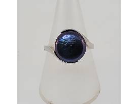 Irridescent coin pearl in a hue of blue will remind you of the beach every time you wear this ring. Sterling Silver Ring is a Size 10.