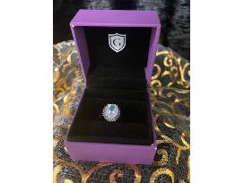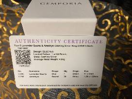 Complete with an authenticity certificate, this absolutely gorgeous ring features both amethyst stones and a dazzling oval-cut lavender quartz on a sterling silver band. Totaling 3.54 cts. Size 6.