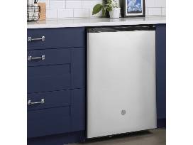 This GE compact refrigerator is perfect for all of your beverage storage needs. It is 24" of Stainless Steel, has a 5.6 cubic foot capacity, and has both built-in and freestanding capabilities, leading for easy installation under the counter or anywhere at all!