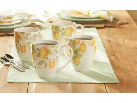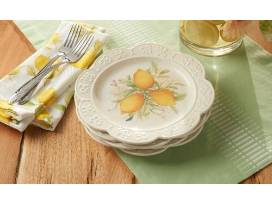 For over 55 years, Princess House has been committed to developing quality products that support healthy lifestyle choices while maintaining beautiful, well-crafted products. This unique Marbella Limoncello Set features exclusive lemon artwork and would add a one-of-a-kind look to any table setting. This durable stoneware set includes (4) four lunch plates and (4) four mugs decorated with scalloped rims and embossed details. Microwave and oven safe to 400°F so you can serve a warm meal in style. Dishwasher safe.