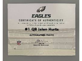 From back-up quarterback to front-runner for MVP this year, Jalen Hurts is leading a record-breaking season with the Philadelphia Eagles. No wonder he's #1. Complete your Eagles memorabilia collection with a signed photo from the star quarterback!