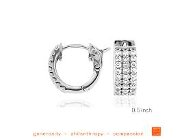 Flattering and glamorous, this stunning pair of huggies will become your â??go-toâ?? and most favorite earrings once you own them! Hypoallergenic, crafted in 925 sterling silver with gold overlay and Europeâ??s world-renowned zirconia crystals â?" the best simulated diamonds ever created! Signature press and release safety clasp, lightweight â?" overall stunners! Outstanding packaging for gifting, storing or for travel. Created exclusively for the nonprofit community!