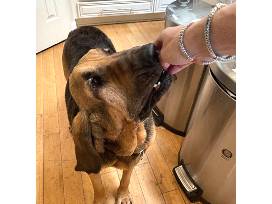 Yogi was surrendered for euthanasia for medical reasons. We scooped him up (all 93.8lbs of him) and got him evaluated. Heart worm positive and 7 months of treatment later, this boy is SO ready for a forever home. This pure bred Bloodhound is easy going, adores people, and will steal your heart for being so darn lovable.