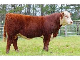 Mariah has written her page in the Hereford history books. She was crowned Grand Champion Horned Hereford Female in Denver as a heifer calf and that isn't her most impressive feat. She has exploded since coming into production. She has placed females in the donor pens of some of the most noted herds in the industry; Hoffman Ranch, Churchill Cattle Co, Frederickson Ranch, Iron Lake Ranch, 6 Mile Creek, Williams Hilltop Herefords among others. She has AI sires in our battery that are making a big impact around the country. She stamps every calf with power, stoutness and elite phenotype. Her females are flawless uddered, feminine made and ultra powerful.