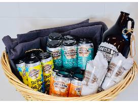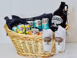 Enjoy a local brew from Charter Oak Brewing located in Danbury, CT. This custom basket contains one 6-pack of Little Charter Session IPA, one 6-pack of 1687 Brown Ale, a 4-pack of Too Hazy King James New England double India Pale Ale, a growler meant for beer filling of your choice (the first round is on Charter Oak Brewing), two-pint glasses and a blanket. Check out this outstanding company at Charter Oak Brewing.