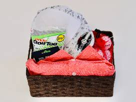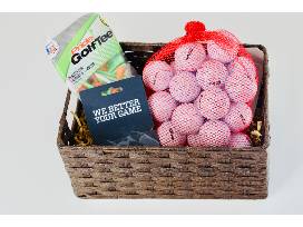 For the beginner who is just beginning to tee off, enjoy a Vineyard Vines red collared shirt (M), a $25 Golf Galaxy Gift Card, a Live Lucky hat, golf balls, and tees!