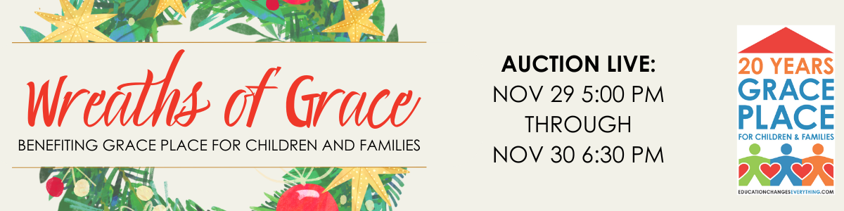 You can still participate in the auction!Get into the holiday spirit and support Grace Place by bidding on beautifully crafted wreaths in our inaugural Wreaths of Grace auction! These wreaths were decorated by Naples finest Interior Designers, and all proceeds go to helping our children and families at Grace Place. Check out the items page to see each wreath, and learn about the designer who created it!