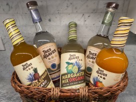 Tres Agave organic tequila and mixers: Blanco Tequila, Reposado Tequila, Original Margarita mix, Pineapple Ginger Margarita mix, Mango Chili Margarita mix
