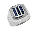 Gentlemen's Sterling Silver Sapphire and Cubic Zirconia Halo Ring & Gentlemen's Stainless Steel Bracelet with Diamond Detail. Donated by: Royal Jewelry Manufacturing, INC.