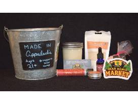 A selection of Bear Dance Market's customer favorites: CBD oil, salve, pre-roll, bath salts, bath bomb, and Shine Your Light soy wax candle. All products were made locally! Must be 21 or over to purchase hemp products.
