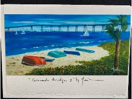 Set of 3 fine art 5 x 7 greeting cards (value $15 total) titled: Del and its Beach, High Tide at the Del and Coronado Bridge 3