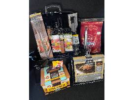 Whether you're on the beach or in your backyard, this basket has everything you need to be Chillin' and Grillin'! Load your new mini grill with Kingsford Cumin Chili flavored Charcoal Briquets. Barbequing accessories galore in this basket including Cuisinart non-stick grilling basket for your veggies, Mr. BBQ grilling basket, 7 piece stainless steel BBQ tool set, and a four pack of metal bbq skewers. On a night where you feel like more chillin' and less grillin' take your family to Cheesecake Factory! $50 Cheesecake Factory gift card included!