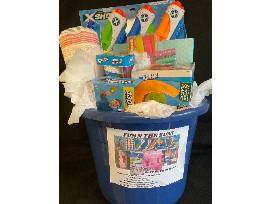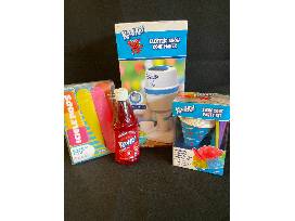 Keep your kiddos entertained all summer with this basket includes everything you need for a fun day in the sun! Start the day with a squirt gun and water balloon battle. Cool down with a snow cone using your new Kool-aid electric snow cone maker, cups straws and cherry flavor included! Kids can make popsicles for later with a 4 pack of reusable silicone ice pop makers. Take the game of volleyball to the next level with this inflatable volleyball sprinkler. If you want to stay dry, relax on your new picnic blanket and lay out in the sun while you blow bubbles for the little ones or play a game of X-Large Connect Four.
