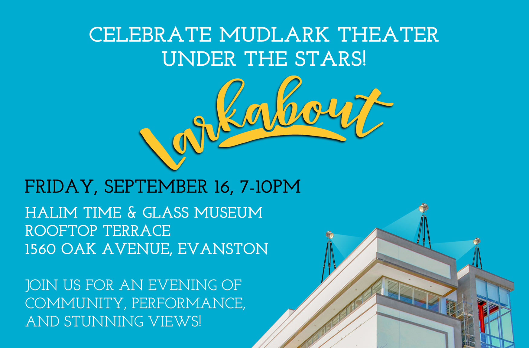Now in its eighth year, the signature fundraiser has become a must-attend event filled with joy and celebration of Mudlark's work for the past 17 years. Join us on the fully accessible rooftop terrace of the Halim Time and Glass museum, 1560 Oak street, for drinks and hors-d'oeuvres, and a night of performances and laughter.