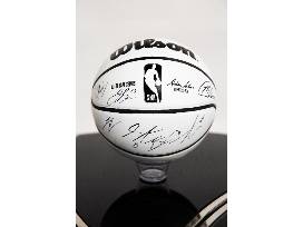 Autographed by Dallas Mavericks 2021-2022 team ball signed by: Davis Bertans, Sterling Brown, Jalen Brunson, Reggie Bullock, Trey Burke, Marquese Chriss, Spencer Dinwiddie, Luka Doncic, Dorian Finney-Smith, Josh Green, Tim Hardaway Jr., Maxi Kleber, Boban Marjanovic, Frank Ntilikina, Dwight Powell, and Coach Jason Kidd.