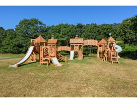 * Patio with BBQ leading to an amazing CedarWorks Serendipity playground