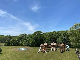 * Playroom: 4 Queen bunk beds, 3 pullout couches - (1) Queen and (2) Twins - downstairs in the finished basement