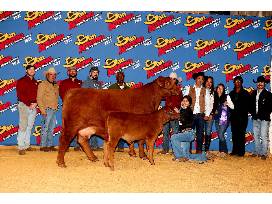 The 2018 World Congress Red Brangus Grand Champion Bull, CEO is a dominating presence of performance, sound structure and explosive dimension from every angle. He is one of the heaviest muscled, deep sided, bold ribbed sires to come along since Statesman 100S. His dam, TRIO's Wildfire 175W, was a two-time National Grand Champion female, Show Heifer of the Year and Show Dam of the Year. CEO is passing along the championship legacy of the 175 line having sired the 2021 IBBA National Grand Champion Female, Sendero's Galaxy 59G8 (offered in Lot 10).