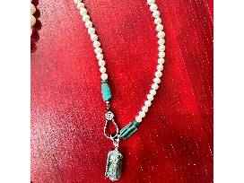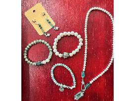 This handmade set is made of Ancient Roman Glass beads along with freshwater pearls. The set includes a pair of earrings, 3 bracelets, and a beautiful necklace.