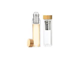 - Tea Infuser Bottle - This double-walled glass bottle features a bamboo lid - and a detachable strainer.