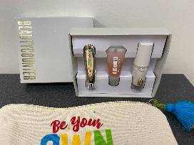 BEAUTYCOUNTER says to "Be your own sparkle!" Check out this all-in-one mascara, jellies cream shadow in caramel, and lid glow shadow in moonlit/Ombre crème. Also included is a mini facial kit with a sample vitamin c serum, overnight resurfacing peel, charcoal mask and a silicone spatula. In an adorable bright and springy bag!