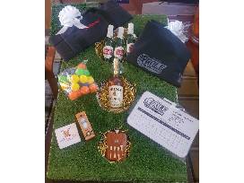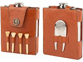 All you need for some at-home backyard chipping fun! Includes a Golf Chipping Backyard Golf Game, with 20 Foam Balls, Chip Mat, Carry Case, Scoreboard, Golf Bag, Beer sleeve cooler for 6 cans, 7-ounce flask in a leather case, divot tool, tees and ball marker. Accented by a bottle of Jameson Crested.