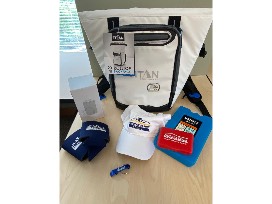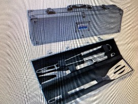 1Be prepared for grilling season with a tailgate kit that includes a cooler, coozies, hat and grilling utensils.