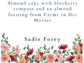Almond cake with blueberry compote and an almond frosting from Creme by Sadie Forey.