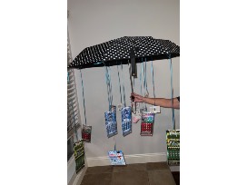 Kate Spade Black/White travel umbrella, umbrella rack stand & $100.00 dollars in Lottery tickets.