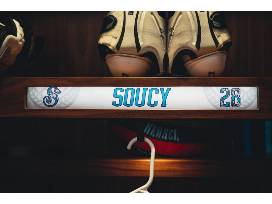 #17 Jaden Schwartz's Locker Nameplate from the Pride Game on April 9, 2022 versus the Calgary Flames.