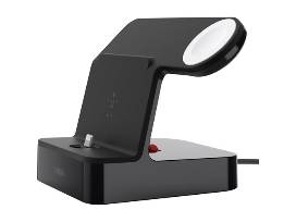 Energize your Apple Watch and iPhone with this Belkin PowerHouse charge dock. The built-in VersaCase lighting connector adjusts to multiple positions to fit most cases, and the dual integrated chargers let you mount two devices simultaneously. This black Belkin PowerHouse charge dock's sleek, compact design keeps your gadgets above the desktop surface for scratch protection and enhanced visibility.