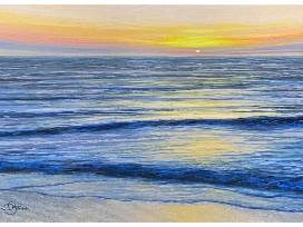 At Sundown by Del-Bourree Bach acrylic on board, 6 x 8 inches, 10 x 12 inches framed. Del-Bourree Bach is a signature and board member of the American Society of Marine Artists. His works are included in many private and public collections, and he has received over 200 awards in regional, national and international competitions.