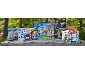 A collection of five different LEGO sets including: Star Wars: The Mandalorian The Child (75318) for ages 10+; Dots Creative Designer Box (41938) for ages 7+; City Town Center (60292) for ages 6+; Super Mario Adventures with Mario Starter Course (71360) for ages 6+; and Vidiyo Music Video Maker Punk Pirate Ship (43114, retired) for ages 8+.