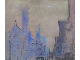 City Scene by Frederick R. Wagner (1864-1940) pastel, 8.5 x 10 inches, 15 x 16 inches framed. Born in Port Kennedy, PA in 1864, Frederick R. Wagner enrolled at the Pennsylvania Academy of the Fine Arts where he served as chief demonstrator of anatomy to the life classes and studied under Thomas Eakins. He then traveled to California where he began painting before returning to Philadelphia and taking a job as illustrator for the Philadelphia Press. He often painted impressionist urban scenes and in 1912 founded the Addington School of Painting. His modernist work is sought after by many collectors of the avant-garde movement.