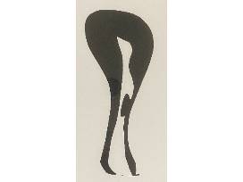 Uttanasana by Stephanie Psarros original screenprint 3/12, 2021. Born in London to a Greek family, Psarros moved to New York City in 2005 where she received a BFA in Fine Arts from the School of Visual Arts. Currently living between London, Athens and the island of Chios, she continues to experiment with imprinting her unique designs of yoga poses on paper.