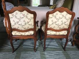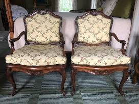 Take home this elegant pair of 19th century French chairs re-upholstered in Scalamandre fabric. Would be a perfect addition to your sitting room or bedroom. Measure 37 inches high x 24.5 inches wide x 18 inches deep.