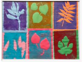 Series of two paintings of leaf art created by the Robins class. Both are framed and are 21" x 30". The highest bid will get first choice of the paintings, and the second highest bid will receive the other painting.