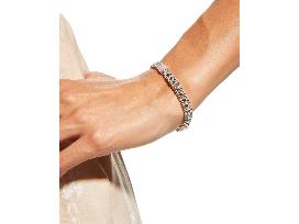 Sterling Silver Spark Single Pave Diamond Station Set by caviar beading forms this beautiful single link bracelet designed by Steven Lagos.