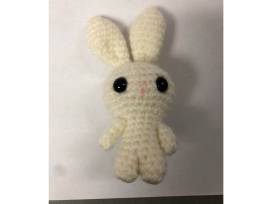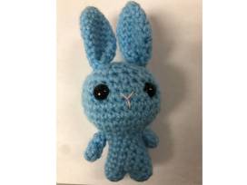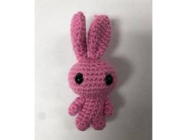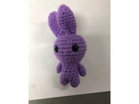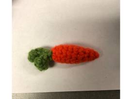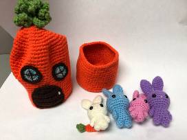 Bunnies hiding away in their little carrot home. It has a pink bunny, blue bunny, purple bunny, and white bunny and includes a small carrot. Crafted by Christi Rack.