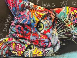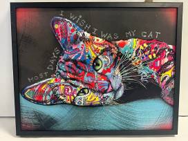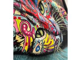 This incredible Dean Russo print features a fabric 3D cat in bright colors. Great wall hanging for those who want to make their home "pop" with their love of felines!