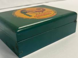 This stunning one of a kind VINTAGE card holder was created by HHHS volunteer Karen Simecka. She created it decades ago when she learned how to decoupage. It has two slots for business cards or other knick knacks and is painted a beautiful turquoise. Don't miss out on this piece!