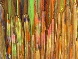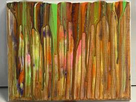 This painting is open to interpretation by each unique viewer. For fans of "Everything, Everywhere, All At Once," Lava in Spring may evoke the color wheel of style that villain Jobu Tupaki sports throughout the film. For millennials, a metaphor for the Lisa Frank brightness of our youth melting behind a more earth-toned ennui of adulthood may leap off the canvas. For others, this piece will add a touch of nature, a dense jungle as viewed through the refracted surface of a river or a volcanic eruption, lava flowing into a tropical forest, to your home or office.