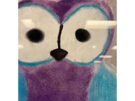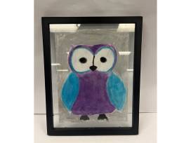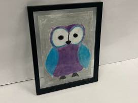 This framed pastel drawing of an owl in cosmic colors is sure to add a pop of color to your life!
