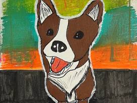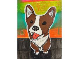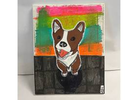 We just can't get over how cute this colorful pup is! Mochi was created with chalk markers on canvas by HHHS Adoption Staff Bella. A unique one of a kind find!