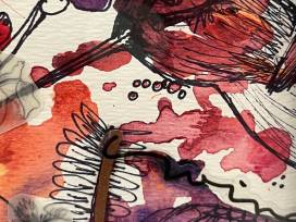 In this dainty framed 4x6 collage - created with watercolor, ink pen, and accoutrement, get lost in the wildflowers and winds of a hummingbird's grace!