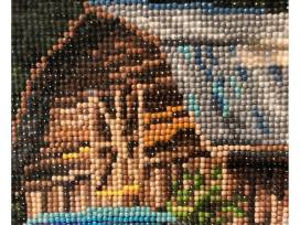 Feel the summer days roll in with this lovely beaded art. The piece brings the viewer to a cabin in a wooded area, secluded from the rest of the world.