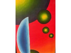 This unique oil on canvas was created by Laura Simone. The artists says "this was one of my first attempts at gradient abstract painting." It was donated Eldon Gay and Janice Boston.