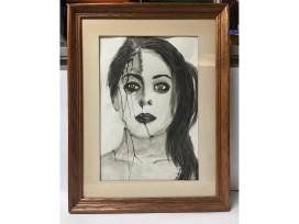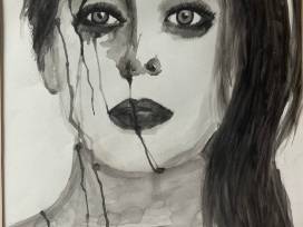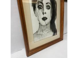 This stunning 18 x 24 framed watercolor depicts a girl amidst an internal struggle. A striking and thought-provoking piece.