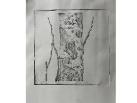 This stunning matted birch tree image was created using drypoint intagilo - where the negative space is etched into acrylic and then the plate is inked and pressed to create this design.